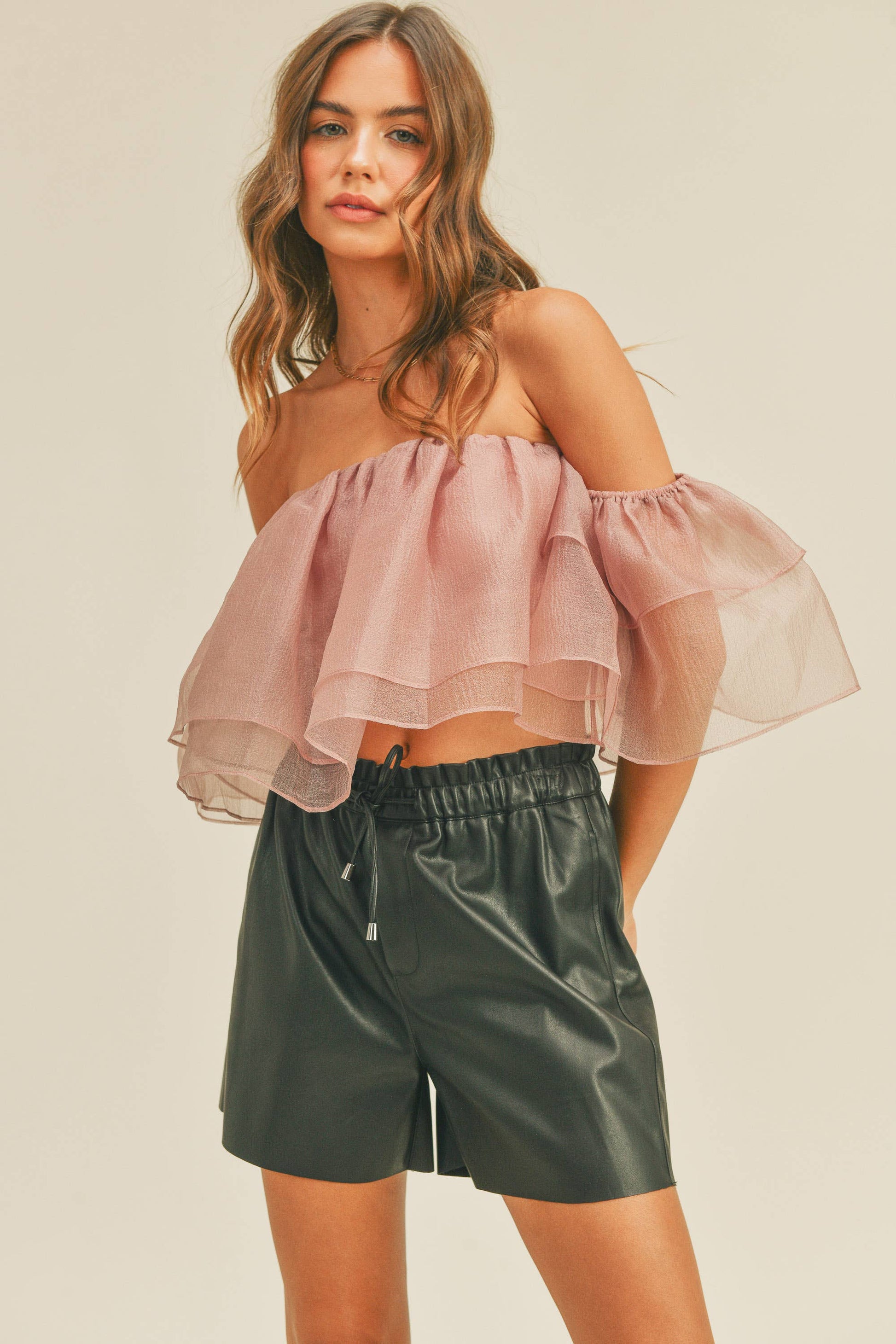 Final Sale‼️ORGANZA RUFFLED TOP Size + Fit - Model is wearing size S - Measurements taken from size S - 5'8" / 172.5CM - 32 - 23 - 34