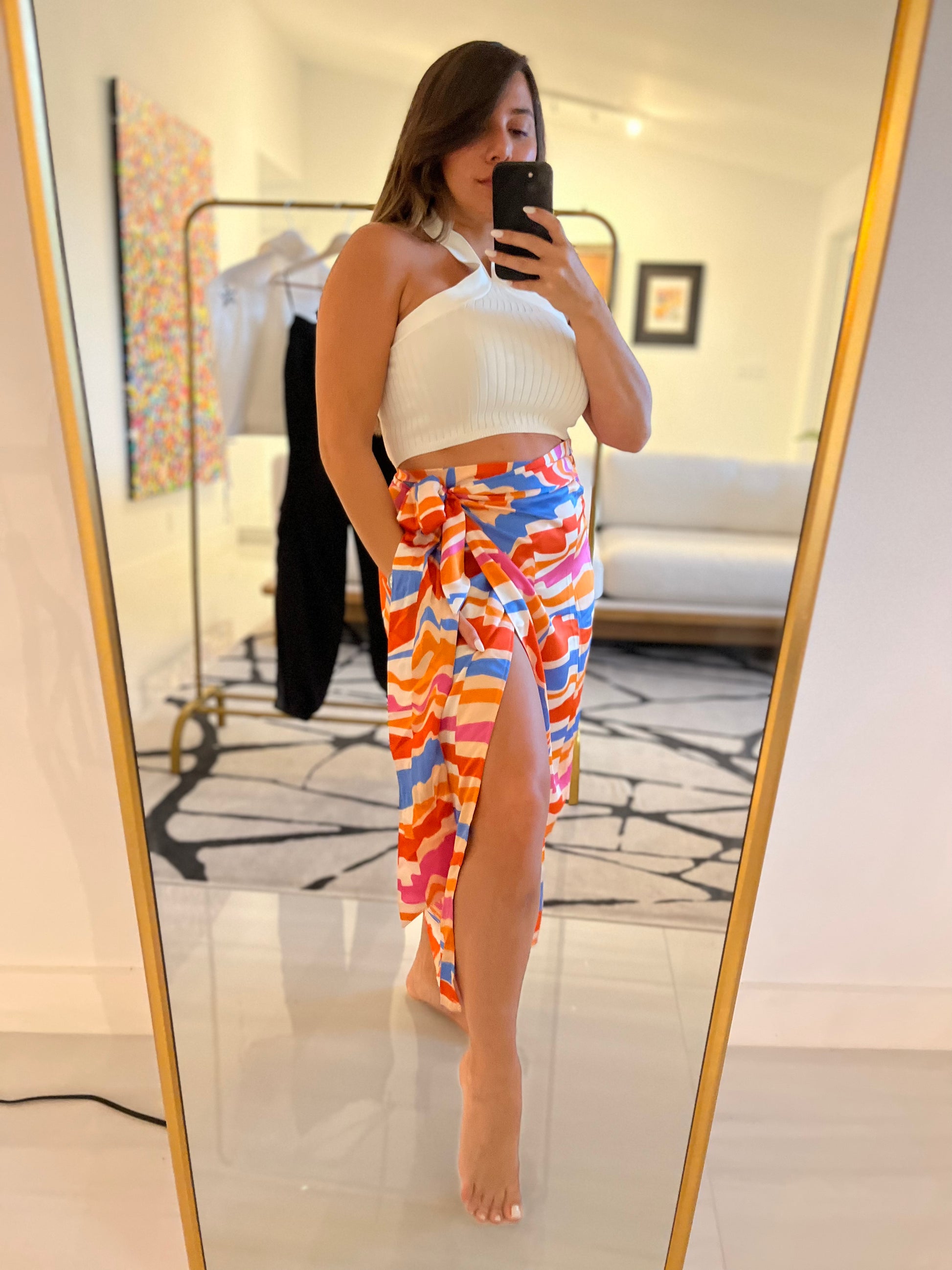 Final Sale‼️Geometric print midi skirt featuring a wrap design. - Wrapping silhouette - Loop tie fastening on the waist - Unlined Complete the set with the matching top, Shell: 100%